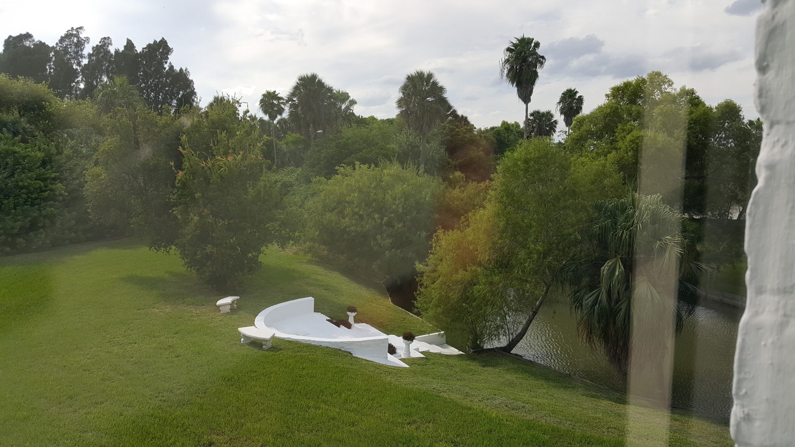 The house was built in two increments: the two-story family wing on the west and a one-story guest wing on the east, which together frame a central, walled patio (the swimming pool is a later addition). The Herald characterized the architecture as “modified Mediterranean.” The house is built of brick, with concrete floor and roof structure. The site was an 85-acre estate on Resaca de la Palma off Old Port Isabel Road. The Miller House was one of a number of architecturally ambitious country houses constructed by Oklahomans in the Valley in the 1930s and early ‘40s. These included Casa Poinciana, the Hubert R. Hudson House of 1938 (which the BCC tour visited in 2011) and what is now called Casa de los Ebanos, the Frank Russell House at Barreda (1939, Stanley W. Bliss). The most architecturally celebrated of these country houses was the modern house that the Pan-American Airlines pilot George Kraigher commissioned the Los Angeles architect Richard Neutra to design for him in 1937.