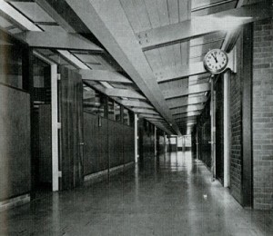 The building displayed Cocke, Bowman & York’s articulate color coding. An ingenious sectional design of the roof brought skylight into classrooms on both sides of the central corridor, balancing daylight, reducing glare, and, crucially, generating breeze flow.